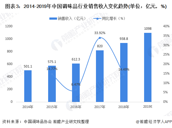 注:中國調(diào)味品協(xié)會尚未發(fā)布最新數(shù)據(jù),2019年數(shù)據(jù)為前瞻根據(jù)行業(yè)發(fā)展形勢測算所得,最終數(shù)據(jù)以協(xié)會公布為準(zhǔn)。