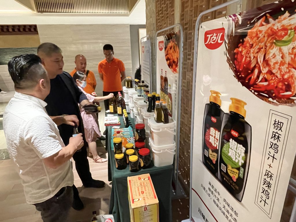 ? ? ? 大會(huì)現(xiàn)場,丁點(diǎn)兒股份帶來了在史正良大師的指導(dǎo)下研發(fā)推出的干鍋醬以及麻得倒花椒油、椒麻雞汁、川味辣鹵、油醋汁等企業(yè)明星產(chǎn)品進(jìn)行展示,豐富的產(chǎn)品種類給大家留下深刻印象,讓大家紛紛索取樣品。