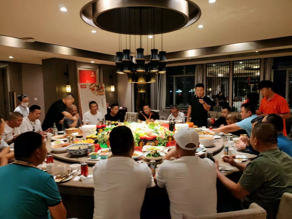 巴南行業(yè)協會會長劉龔雨先生訂購丁點兒老壇酸菜醬并與丁點兒重慶營銷團隊合影留戀