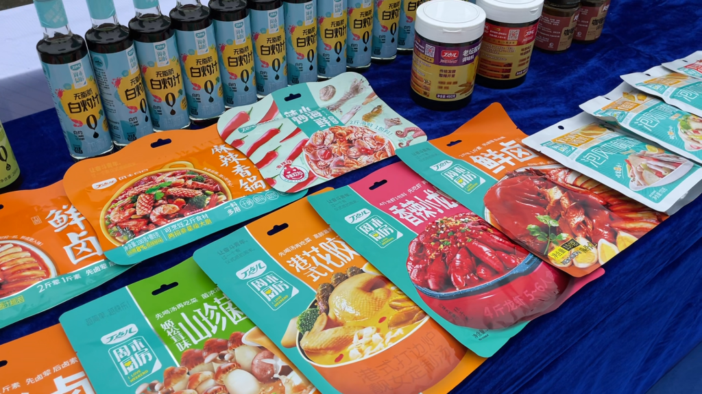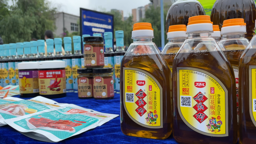 ? ? ? ?同時,丁點兒股份作為承辦單位,也為大家?guī)砹艘粓龃ㄎ稑藴驶瘡秃险{味料特色產品展示,丁點兒-麻得倒紅花椒油、香鍋干鍋醬、無脂肪白灼汁、泡鳳爪調味料等豐富的產品種類吸引了現場師生的目光,大家紛紛駐足了解。