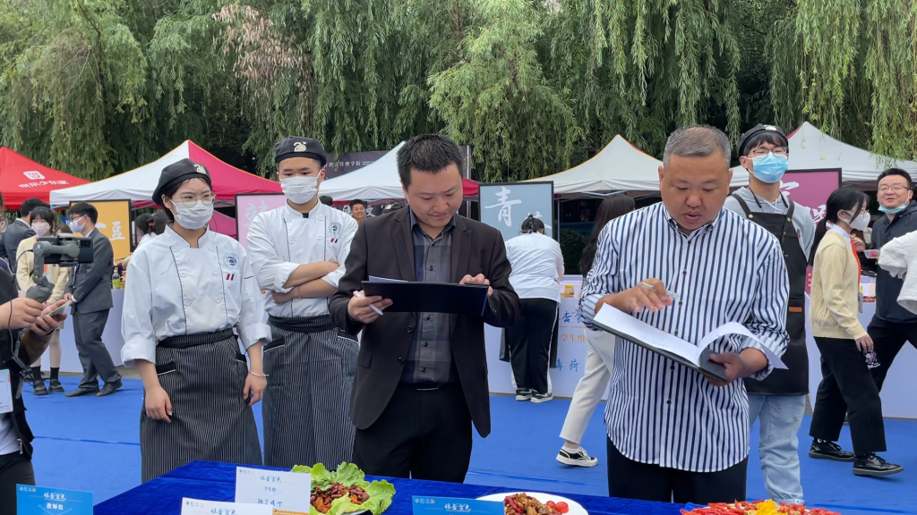 ? ? ? ?接下來是各位學子翹首以盼的決賽環(huán)節(jié),比賽場上,各位參賽選手紛紛拿出看家本領,在烹飪技能方面一展風采。這無疑是一場舌尖上的較量,參賽選手們用心操作,精心設計,各色菜肴設計獨特,色相味型俱佳。學校優(yōu)秀專業(yè)教師評委與丁點兒股份技術中心產品應用培訓部副部長陳證宇共同為選手們的菜品點評、打分。