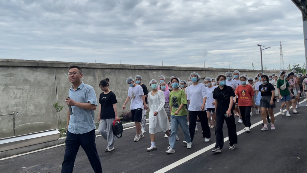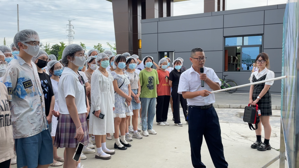 ? ? ? ?稍作休息后,參觀師生一行乘車前往丁點(diǎn)兒股份2廠,由帶隊(duì)老師再次進(jìn)行安全風(fēng)險(xiǎn)強(qiáng)調(diào)后進(jìn)入廠區(qū)參觀交流學(xué)習(xí)。丁點(diǎn)兒股份項(xiàng)目工程管理員王智兵就全廠總體規(guī)劃布局作了簡要分享。
