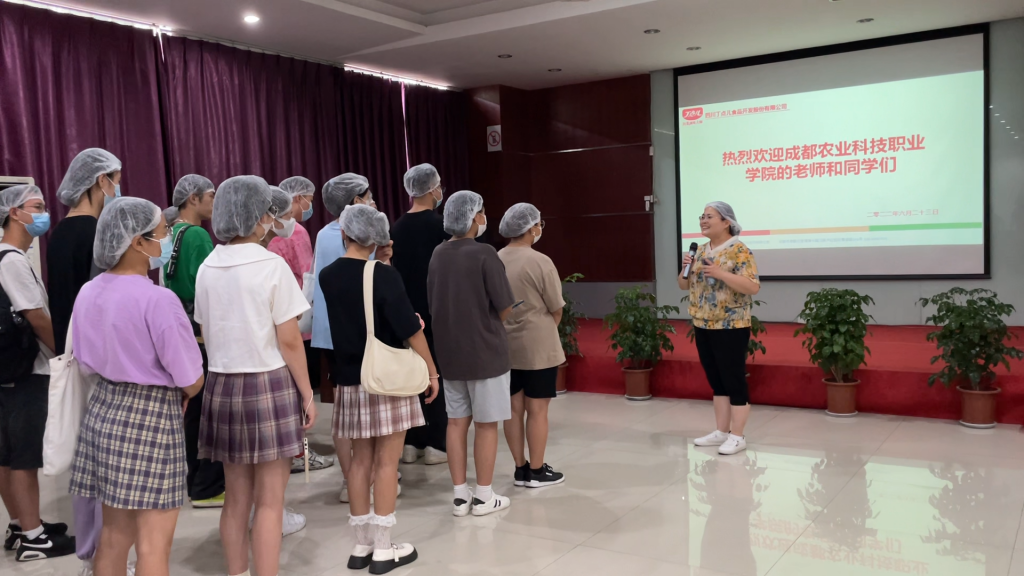 ? ? ? ?為扎實(shí)推進(jìn)產(chǎn)教深度融合,拓寬校企合作深度,盡早讓學(xué)生了解所學(xué)專業(yè)用途,切身了解企業(yè)對人才的需求標(biāo)準(zhǔn)、認(rèn)識技能與就業(yè)能力的重要性,6月23日上午,成都農(nóng)業(yè)科技職業(yè)學(xué)院三位老師帶領(lǐng)一百名學(xué)生來到丁點(diǎn)兒股份參觀交流、探索學(xué)習(xí)。丁點(diǎn)兒股份企業(yè)技術(shù)中心常務(wù)副主任羅強(qiáng)祖、人資行政部部長陳霞等相關(guān)領(lǐng)導(dǎo)參與迎接并向來訪師生表示熱烈的歡迎。