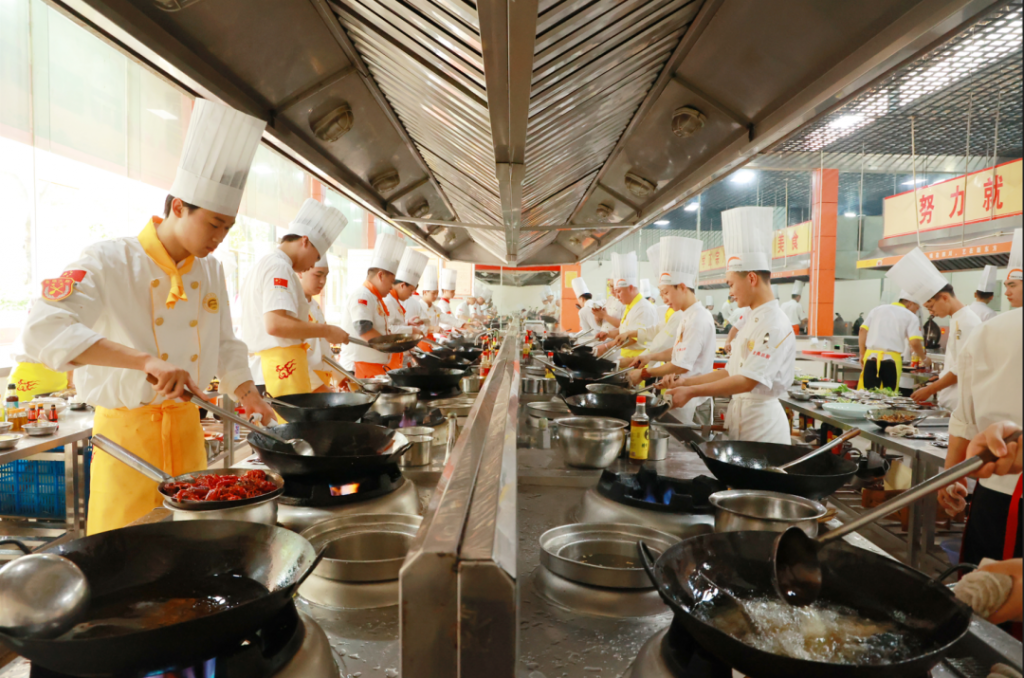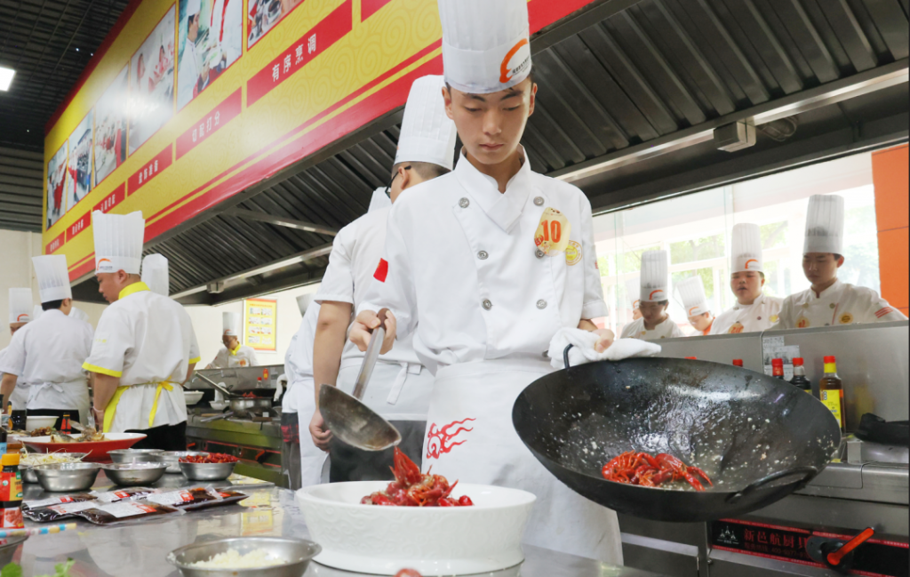 ? ? ? ?本次比賽有“(麻辣、香辣、蒜香、五香)小龍蝦”、“麻辣烤魚”、“干鍋雞”三個賽項。來自新東方的280名餐飲烹飪學(xué)子現(xiàn)場過招,比拼小龍蝦、烤魚、干鍋烹飪廚藝。
