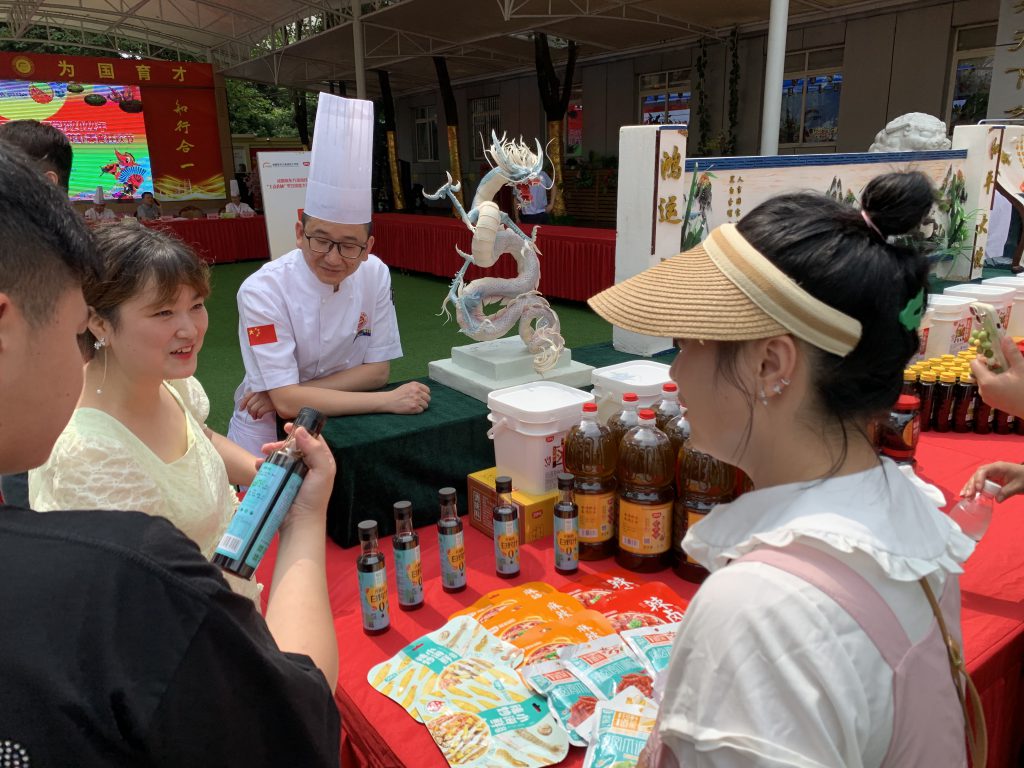 ? ? ? ?展示臺,丁點兒產(chǎn)品與菜品吸引了一批又一批師生駐足了解,給大家留下深刻印象。