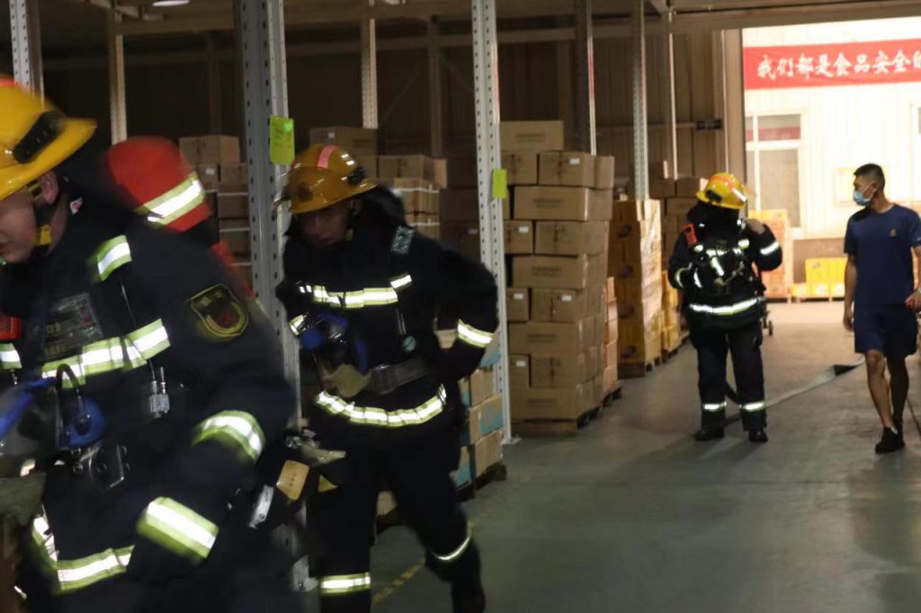 ? ? ? ?演練模擬丁點(diǎn)兒股份成品倉(cāng)庫(kù)內(nèi)出現(xiàn)火情并迅速向周?chē)鷶U(kuò)散蔓延,導(dǎo)致1名職工被困成品倉(cāng)庫(kù)。