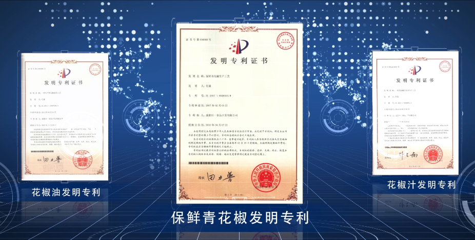 丁點(diǎn)兒股份不斷開(kāi)發(fā)新技術(shù)、改進(jìn)新工藝,先后獲得包括青花椒保鮮、鮮花椒油生產(chǎn)工藝、花椒提取物苦味去除技術(shù)、花椒提露、干制方法及裝置、青花椒汁及其生產(chǎn)工藝多項(xiàng)發(fā)明專利,多項(xiàng)技術(shù)屬行業(yè)領(lǐng)先。