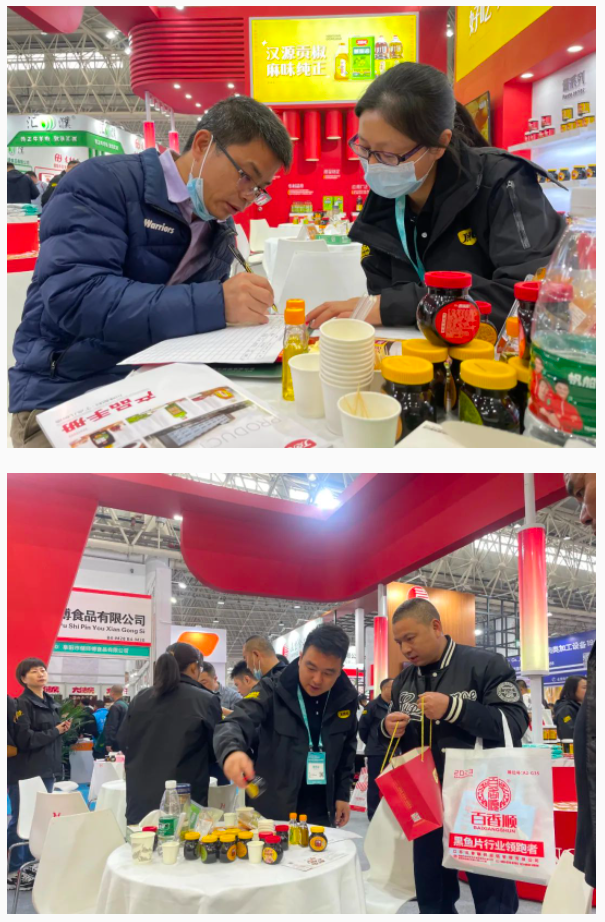 丁點(diǎn)兒展位上,公司流通系列、定制系列、電商系列、預(yù)制菜系列產(chǎn)品吸引了眾多參觀者駐足咨詢和體驗(yàn)。用丁點(diǎn)兒產(chǎn)品烹飪的干鍋掌中寶、川式椒麻雞、酸菜魚等菜品香飄四溢,現(xiàn)場(chǎng)試吃后,不少客戶迫不及待和公司人員洽談,尋求合作。
