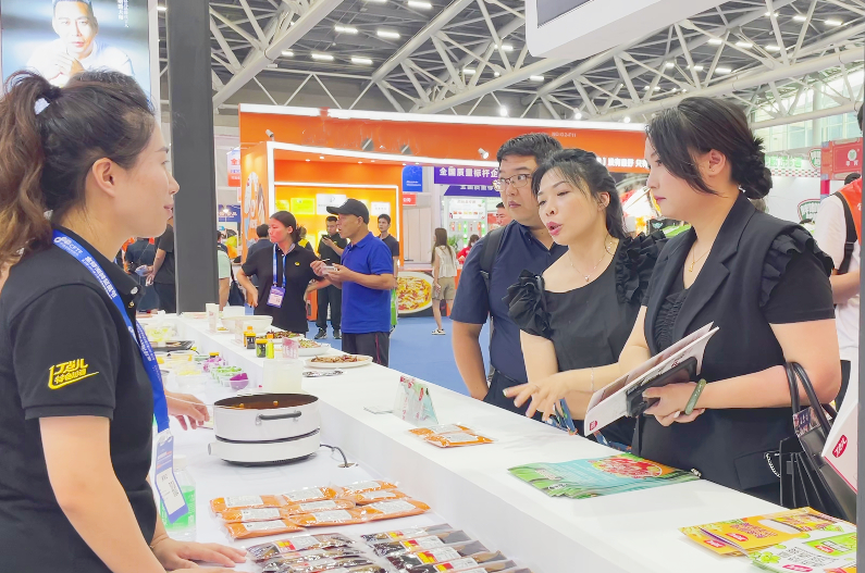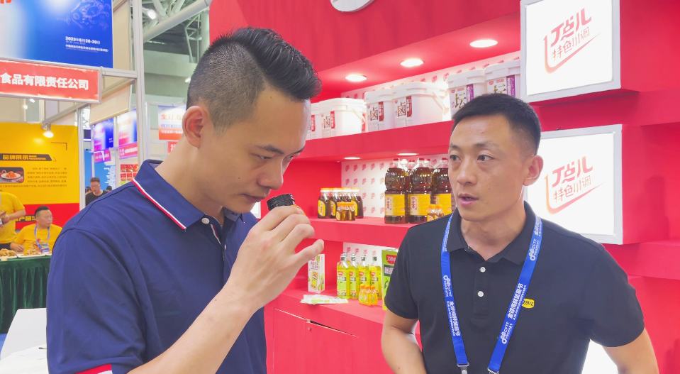 展會(huì)現(xiàn)場人流攢動(dòng),參觀、采購、品鑒不亦樂乎。丁點(diǎn)兒股份展位,風(fēng)味醬系列、雞汁系列、烤魚系列、花椒油系列等調(diào)味料展示突出搶眼,用丁點(diǎn)兒藤椒油、川味辣鹵、老壇酸菜醬、干鍋醬等烹飪的鹵雞翅、酸菜魚、干鍋掌中寶等菜品香飄四溢,贏得了現(xiàn)場過往逛展嘉賓的認(rèn)可。