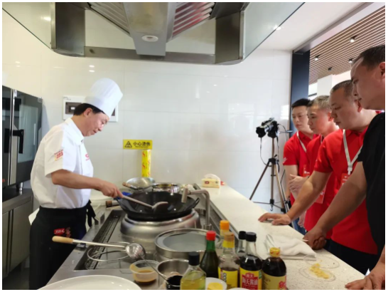 現(xiàn)場(chǎng),大廚們還以分組抽盲盒食材的形式,現(xiàn)場(chǎng)進(jìn)行菜品制作挑戰(zhàn)。大廚們摩拳擦掌、分工有序,用丁點(diǎn)兒干鍋醬、藤椒油、金湯酸菜醬、椒麻雞汁等產(chǎn)品快速出品了一道道色香味俱全的美味佳肴。