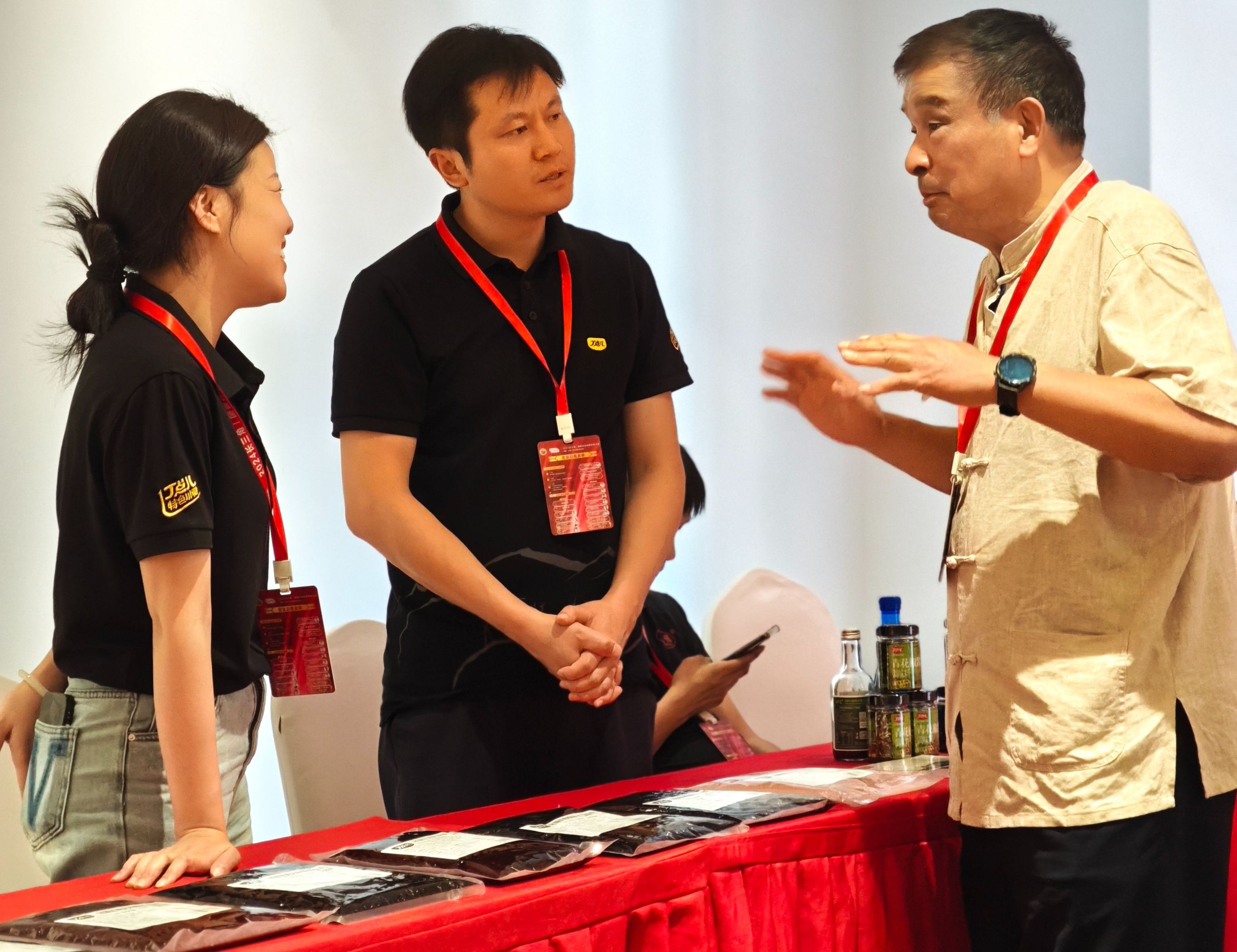 在山東(樂陵)調(diào)味品博覽會(huì)丁點(diǎn)兒展位現(xiàn)場(chǎng),丁點(diǎn)兒食品任康董事長親自接待了中國食品土畜進(jìn)出口商會(huì)會(huì)長曹德榮先生,并詳細(xì)分享了丁點(diǎn)兒藤椒油、麻得倒純萃花椒油等產(chǎn)品的特色與亮點(diǎn)。曹德榮先生對(duì)丁點(diǎn)兒高品質(zhì)特色川調(diào)產(chǎn)品表示了高度肯定,并希望雙方能夠緊密合作,共同推動(dòng)調(diào)味品行業(yè)高質(zhì)量發(fā)展。