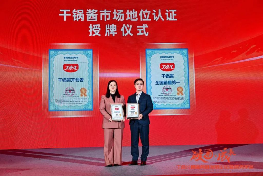 活動現(xiàn)場還發(fā)布了一個重磅消息,尚普咨詢集團(tuán)通過對比中國大陸(含22個省、5個自治區(qū)、4個直轄市)范圍內(nèi),全渠道市場、各干鍋醬產(chǎn)品上市時間與創(chuàng)新情況,得出丁點(diǎn)兒為“干鍋醬開創(chuàng)者”的認(rèn)證。同時根據(jù)全渠道市場,各干鍋醬品牌相關(guān)產(chǎn)品銷量情況,得出丁點(diǎn)兒“干鍋醬全國銷量第一”的認(rèn)證。這兩大品牌認(rèn)證,樹立了丁點(diǎn)兒在干鍋醬品類的絕對地位。