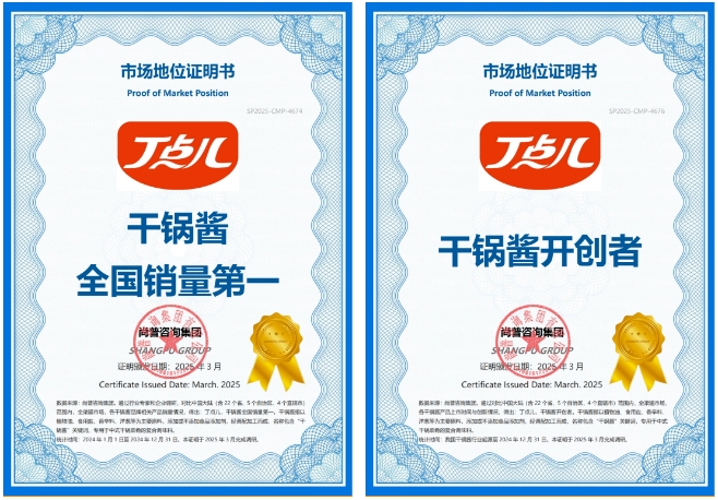 尚普咨詢集團(tuán)是中國(guó)最早成立的專業(yè)市場(chǎng)研究公司之一。其通過(guò)行業(yè)專家和企業(yè)調(diào)研,對(duì)比中國(guó)大陸(含22個(gè)省、5個(gè)自治區(qū)、4個(gè)直轄市)范圍內(nèi),全渠道市場(chǎng)、各干鍋醬產(chǎn)品上市時(shí)間與創(chuàng)新情況,從我國(guó)干鍋醬行業(yè)起源統(tǒng)計(jì)至2024年12月31日,得出丁點(diǎn)兒為“干鍋醬開創(chuàng)者”的認(rèn)證。同時(shí)根據(jù)全渠道市場(chǎng),統(tǒng)計(jì)了2024年1月1日至2024年12月31日各干鍋醬品牌相關(guān)產(chǎn)品銷量情況,得出丁點(diǎn)兒“干鍋醬全國(guó)銷量第一”的認(rèn)證。